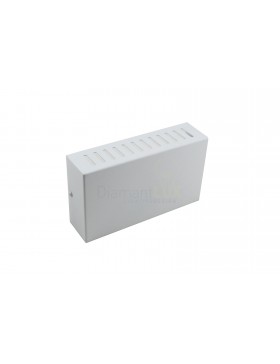 Scatola contenitore rettangolare in metallo bianco. Ideale per nascondere driver 24V DC da 50W.