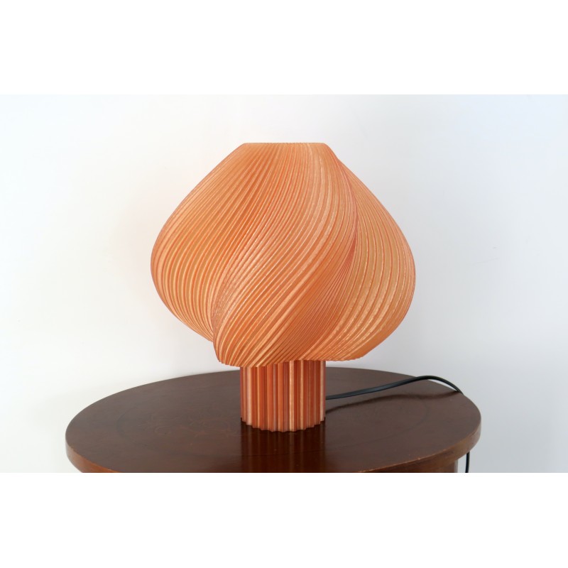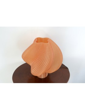 Paralume PETG trasparente traslucido, base in PLA rosa opaco.