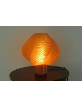 Paralume PETG trasparente traslucido, base in PLA giallo opaco.