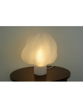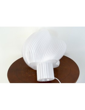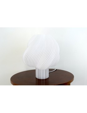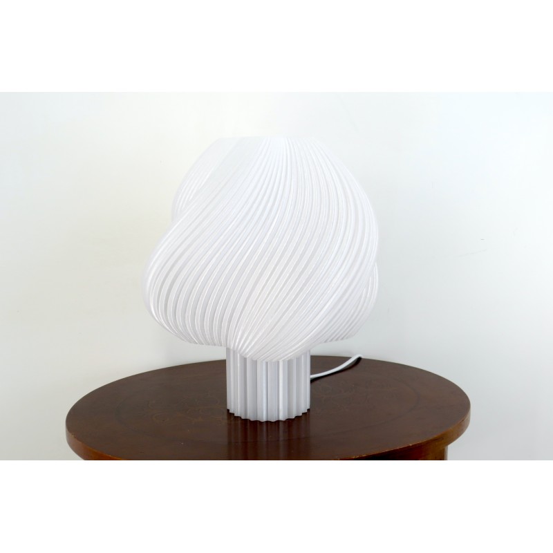 Lampada da tavolo a forma di...Paralume PETG trasparente traslucido, base in PLA verde ossido metallizzato.