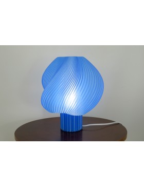 Paralume PETG trasparente traslucido, base in PLA blu marino opaco.