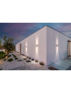Alluminio pressofuso finitura bianco, doppio diffusore in vetro pirex trasparente.