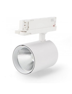 Faretto LED 30W per binario trifase disponibile in bianco o nero, con luce regolabile 3CCT e tecnologia No Flicker. Ideale per negozi e ambienti professionali.