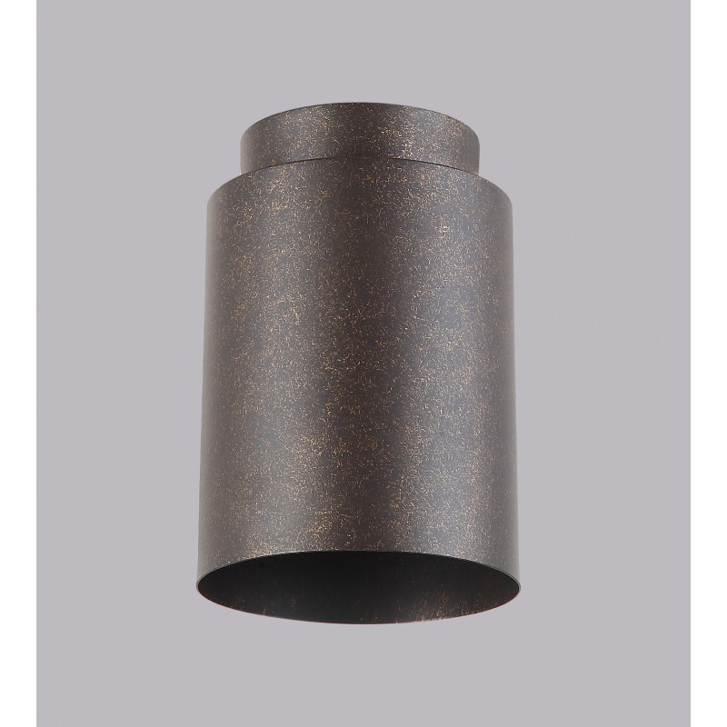 Plafoniera in metallo a forma di cilindro verniciato marrone con leggere sfumature oro. Portalampada con attacco E27, compatibile con lampadine a led. Il colore marrone gli conferisce uno stile rustico country, ideale per illuminare taverne, cucine, soggiorno camera da letto ma anche ingresso e corridoio.