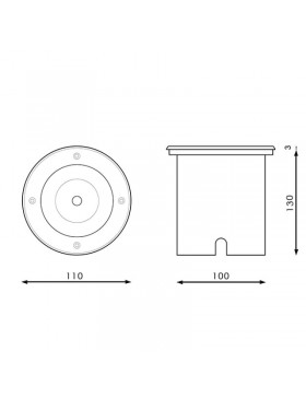 Faretto calpestabile tondo da incasso a pavimento con portalampada GU10 (lampadina non inclusa). Corpo in acciaio inox IP67, ideale per illuminare vialetti, giardini e terrazze in totale sicurezza.