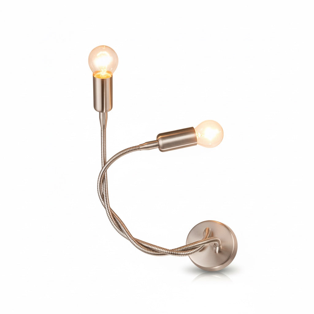 La finitura nickel satinato dona un carattere moderno e discreto, adatto a interni contemporanei e minimalisti. I portalampada E14 permettono l’uso di lampadine LED, anche decorative, così da personalizzare l'atmosfera luminosa secondo necessità.
