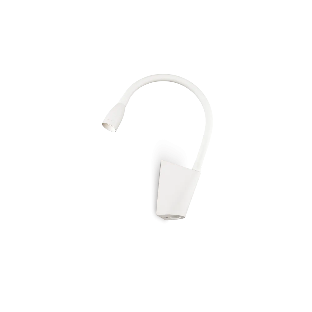La sorgente LED integrata da 3W emette una luce calda da 3000K, progettata per offrire un comfort visivo ottimale durante la lettura senza abbagliare. Grazie ai materiali di alta qualità e alla tecnologia LED, la lampada assicura una durata fino a 20.000 ore con un consumo energetico estremamente ridotto. Disponibile nelle varianti nero e bianco opaco, questa applique si integra con discrezione in ambienti interni moderni, unendo la solidità dell'alluminio alla flessibilità del silicone in un unico elemento d'arredo tecnico.