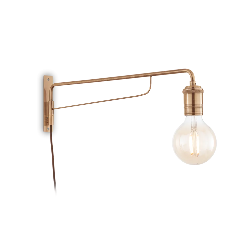 Questo modello si distingue per la sua grande praticità: è infatti dotato di un cavo in tessuto completo di interruttore e spina, permettendo un'installazione agevole anche dove non è presente un punto luce a parete preesistente. Con una sporgenza di oltre 60 cm, questa applique è la soluzione ideale per illuminare angoli lettura, scrivanie o per fungere da originale alternativa alla classica lampada da comodino in una camera da letto dallo stile loft. L'attacco E27 a vista invita all'utilizzo di lampadine LED a filamento, che esaltano il fascino industriale della montatura in finitura ottone invecchiato.
