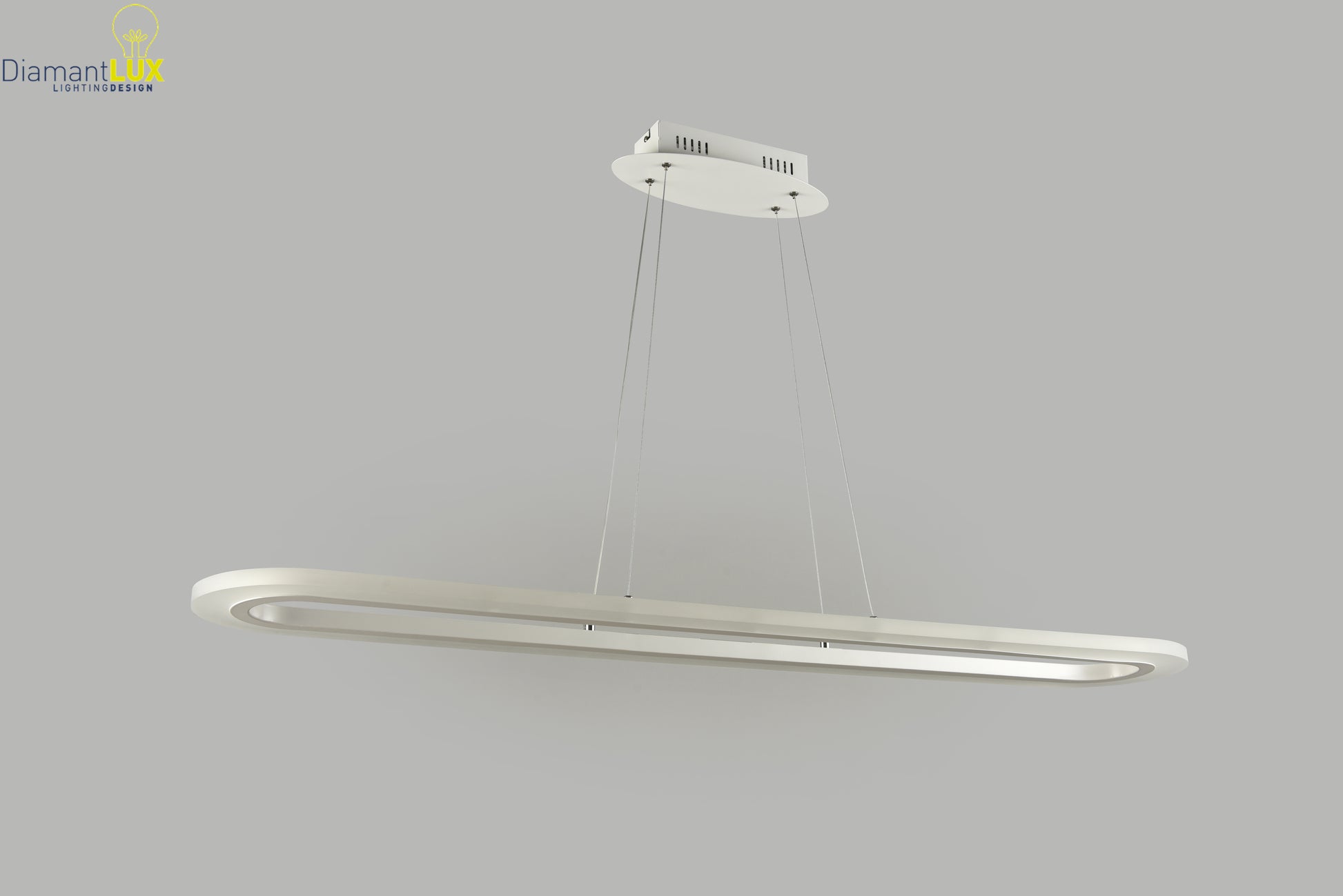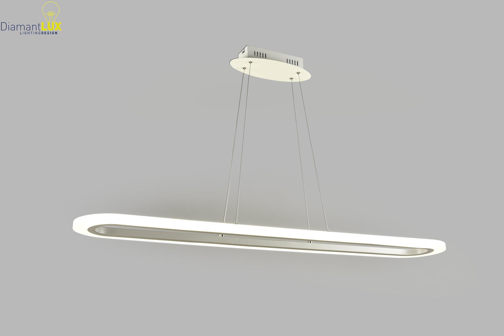 Il Lampadario Ovale LED Moderno CAMELIA S120 di Diamantlux è la soluzione ideale per chi cerca un elemento di design elegante e una luce funzionale. Caratterizzato da una forma ovale distintiva e una lunghezza di , è perfetto per illuminare tavoli da pranzo, isole in cucina o soggiorni. La struttura in acciaio e alluminio con finitura bianca ospita un integrato da , che emette di luce bianca naturale () attraverso il diffusore in acrilico satinato. La luce è proiettata verso l'esterno, garantendo un'illuminazione ampia e omogenea. L'altezza della sospensione è regolabile (massimo ) tramite dispositivi fermacavo, consentendo una perfetta installazione. Questo lampadario non è dimmerabile e ha una classe energetica .