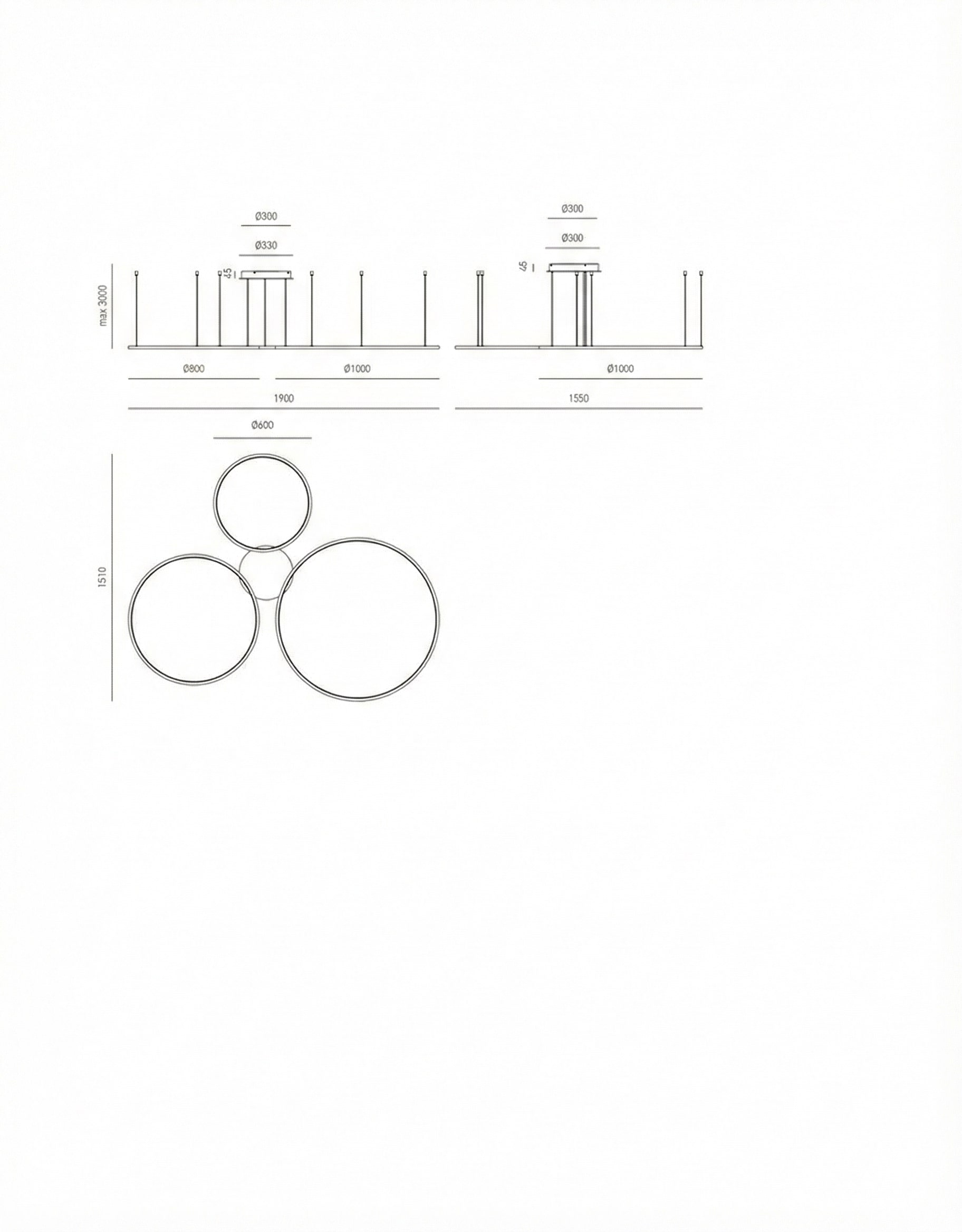 Lampadario 3 Cerchi LED Bianco Ø60-80-100 Orizzontale - Favolux Halo SP3D