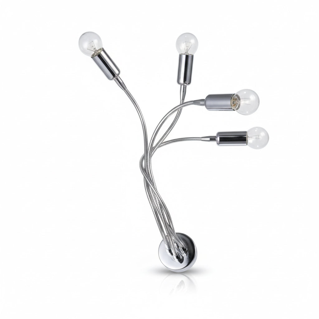 I quattro bracci flessibili orientabili permettono di direzionare la luce con precisione, rendendo LIVIA-A4 ideale per installazioni sopra specchi larghi, lungo pareti, in soggiorni o camere da letto dove è richiesta una distribuzione luminosa ottimale.
